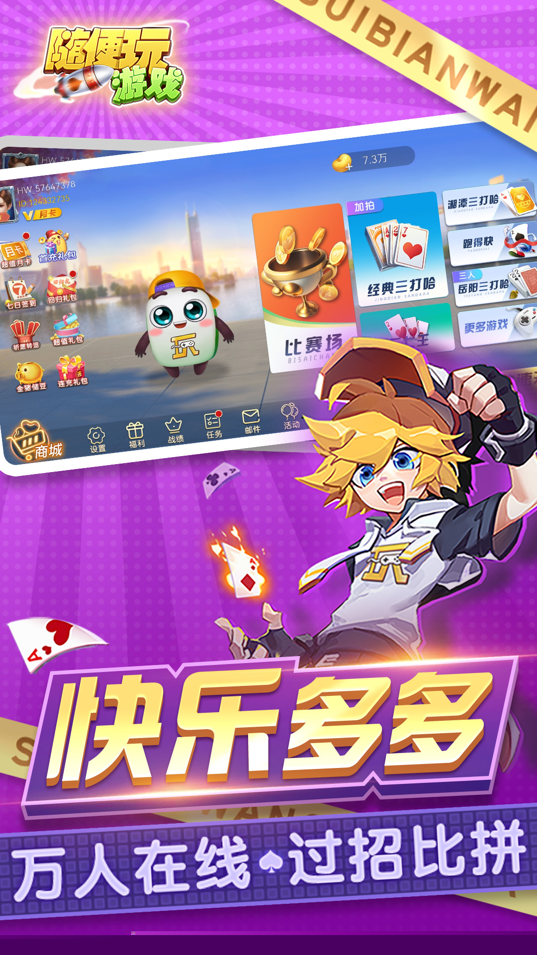 三打哈是一款融合湖南三打一与江西二七王玩法的扑克竞技游戏,凭借独特的撮合机制与万人在线的火爆场面,为爱好者提供了随时畅享的极速对局体验。其核心玩法考验参与者的记牌技巧与团队配合,在精美画面与趣味音效的加持下,于移动端完美复现了线下牌桌的紧张刺激感。