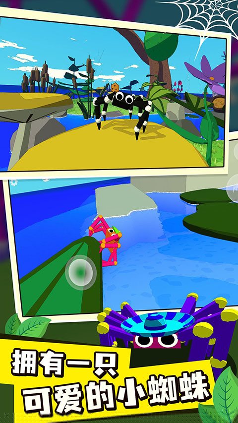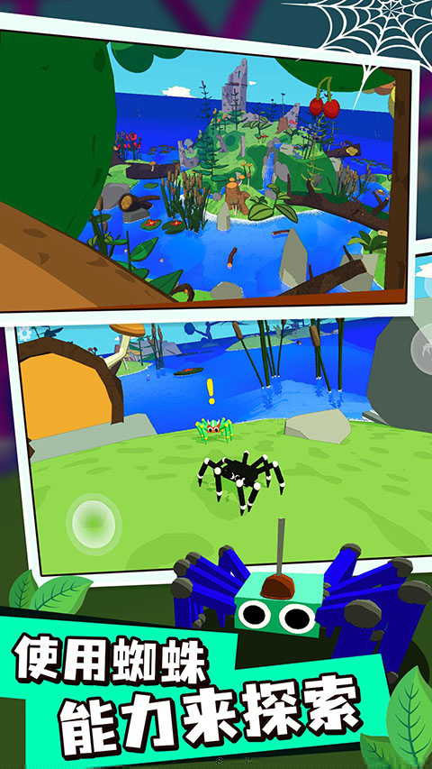利用虚拟摇杆与手势,控制蜘蛛进行攀爬、跳跃与结网。