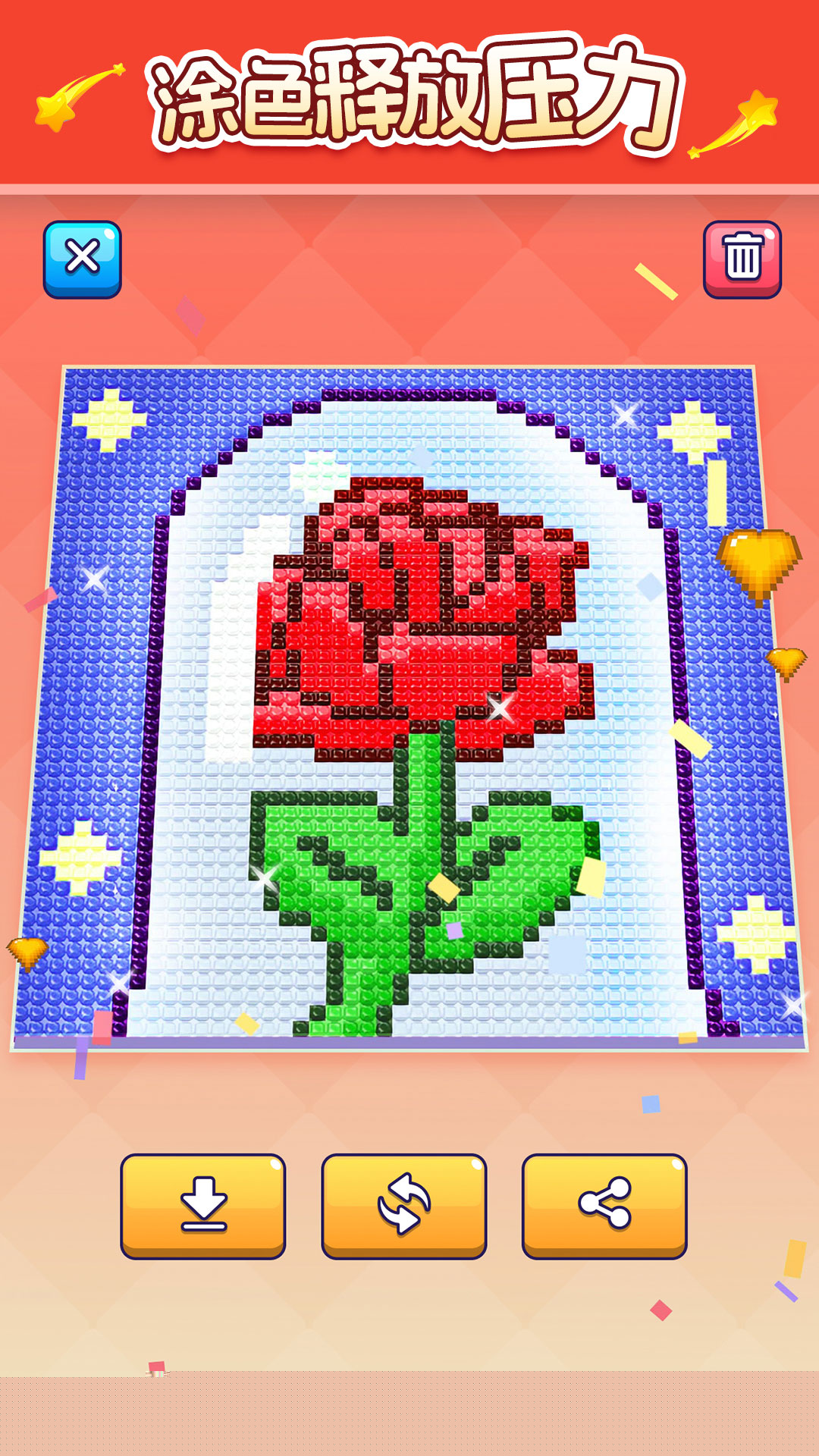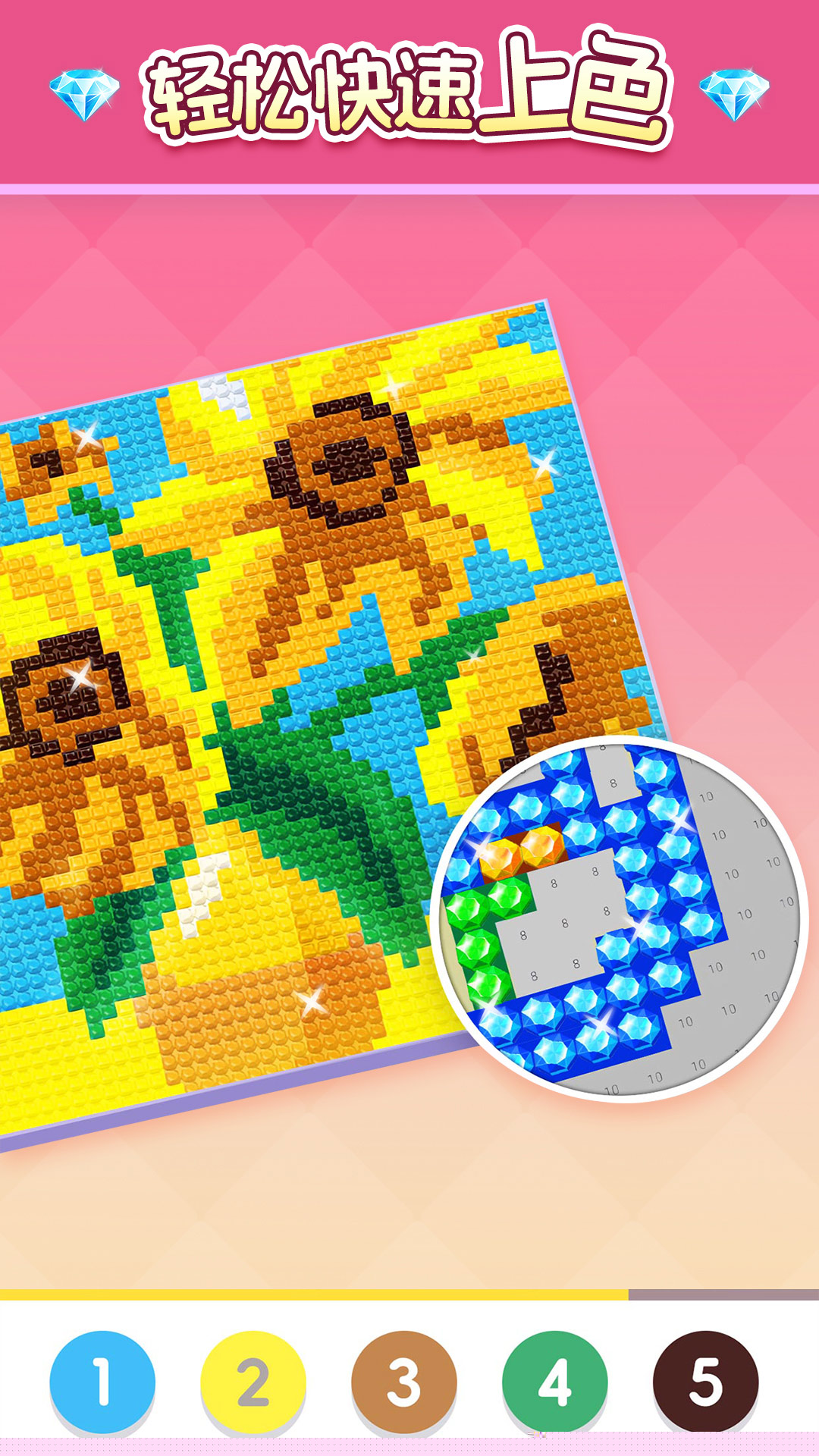 按区域逐步填充,覆盖全部色块即可呈现完整闪亮画作,在本站获取后即可开始体验。
