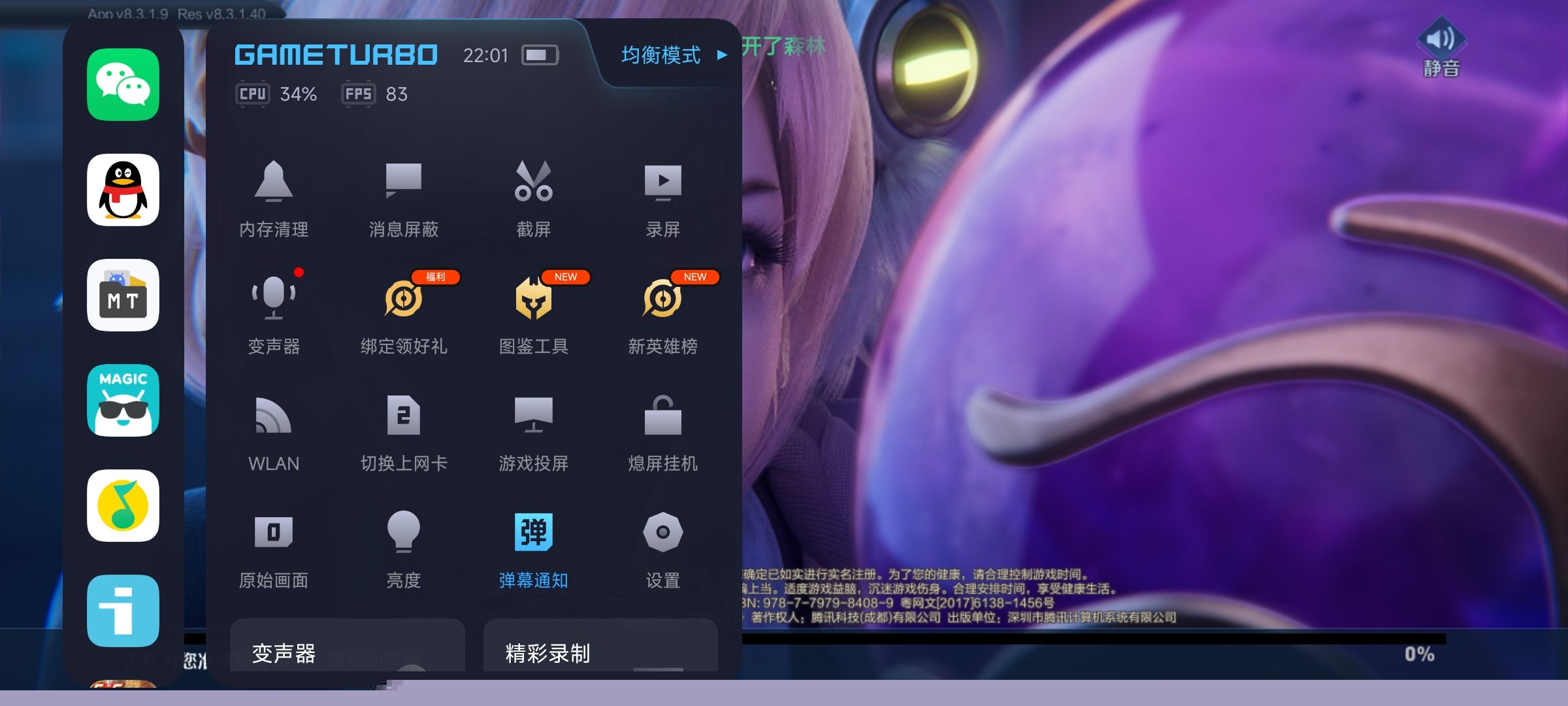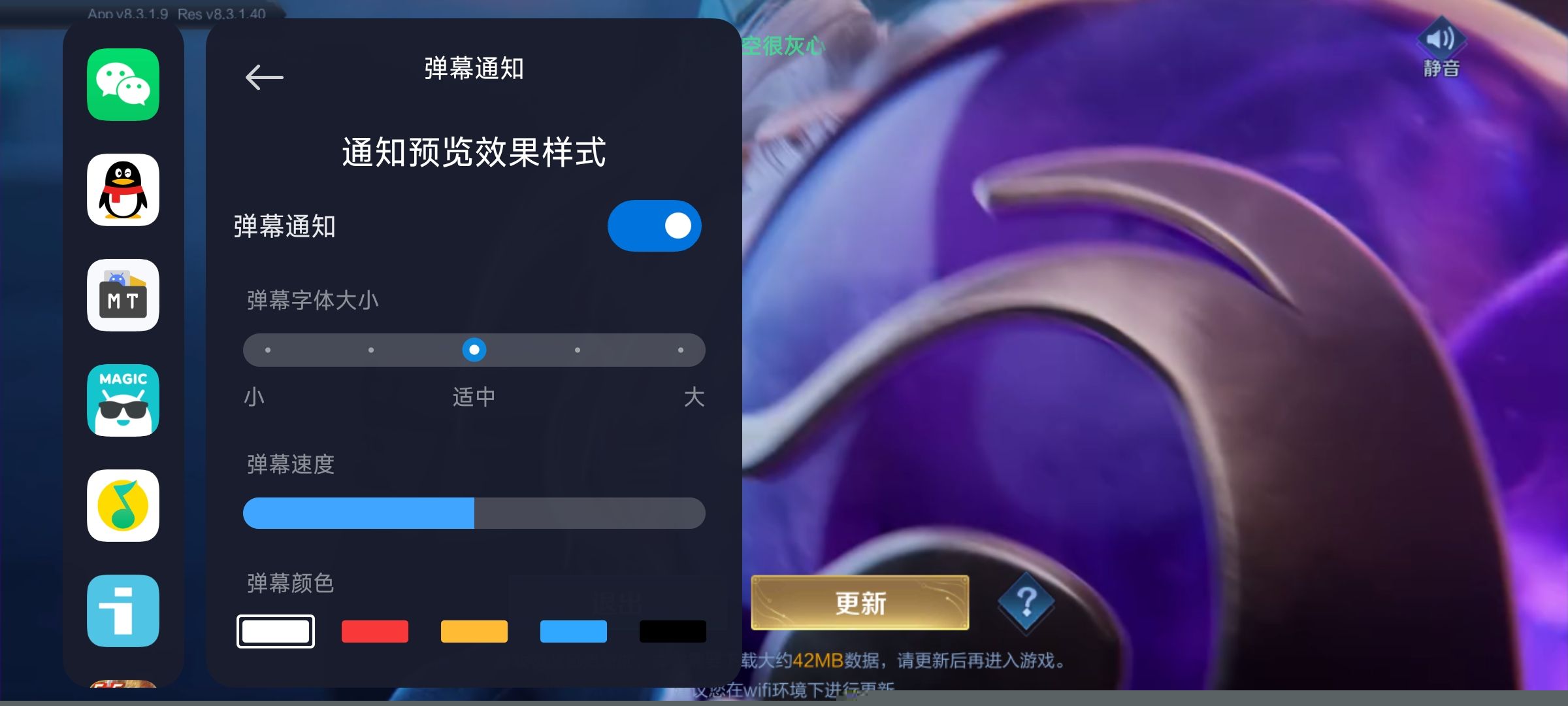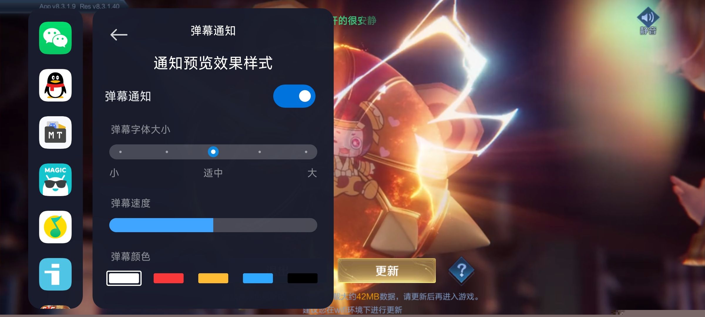 启动任意游戏,呼出侧边游戏工具箱菜单,在激活弹幕通知功能,即可在游戏画面中看到消息以弹幕形式滚动。