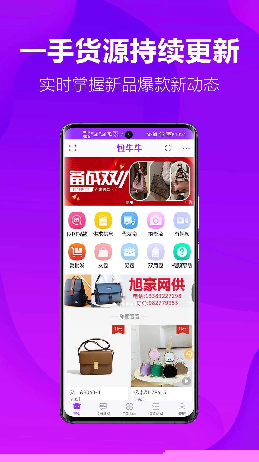 包牛牛是一款专为箱包行业从业者打造的移动端供应链管理软件,深度整合河北白沟及广东狮岭两大产业带资源,提供从海量选品、在线交易到一键分销的全链路数字化软件。
