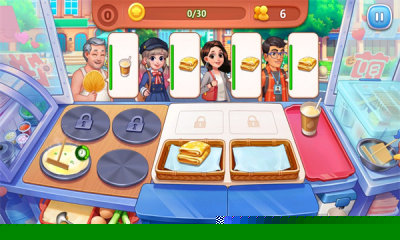 开局需快速浏览多位顾客的菜品要求,合理安排制作顺序,以应对到来的多个订单。