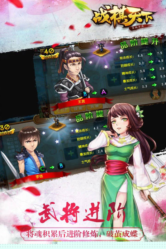 战棋天下是一款以古代战争为背景的策略角色扮演游戏,将扮演一方诸侯,通过招募武将、培养兵种、升级装备来壮大势力,在宏大的战场上体验运筹帷幄的乐趣。其核心玩法融合了角色养成与经典战棋策略,剧情完整,角色性格鲜明,兵种之间存在相克关系,为提供了深度的策略选择和沉浸式的征战体验。