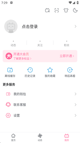 1、打开bilibili谷歌市场版进入到软件中,然后点击右下角的【我的】进入到个人主页;