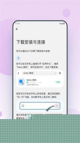 在旧设备上安装并运行Moto换机助手,选择发送数据,根据提示建立连接。