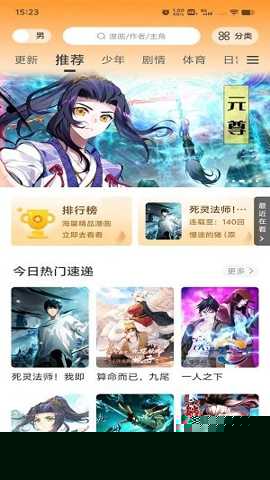启动软件后,主界面展示各类漫画推荐。可通过顶部分类导航或搜索框,输入作品名称或类型关键词进行查找。