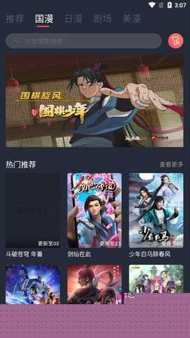 在本站获取软件后完成安装。进入主界面,可通过分类浏览或搜索功能查找想观看的动漫。