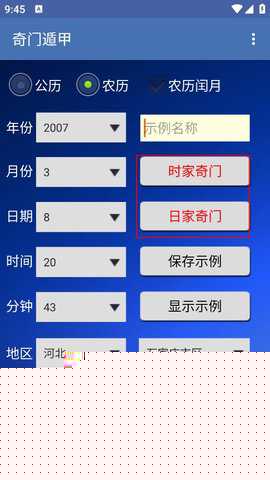 系统将自动转换为干支历并完成阴阳遁局数判定与九宫格构建。