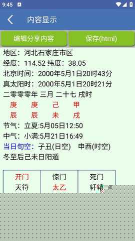 启动后输入准确的公历出生日期、时间及出生地信息。
