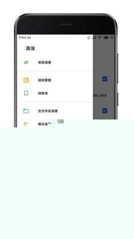 确认选择后执行清理操作即可。如需进行更全面的设置,可通过侧边栏进入设置菜单,根据提示完成各项运行权限的配置。