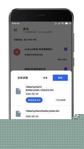以清理残留APK安装包为例,进入相应功能项并启动扫描。扫描结束后,列表将展示所有已识别的安装包文件,用户可自主勾选需要删除的项目。