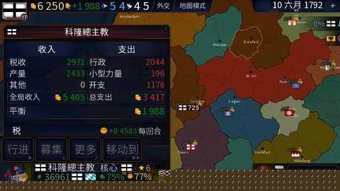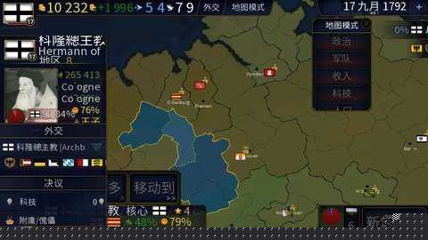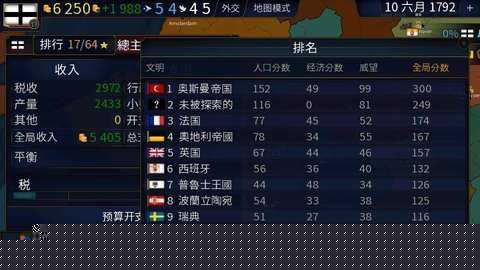 中后期管理侧重于科技文化与大国博弈。利用外交界面缔结盟约或发起制裁,应对诸如瘟疫等随机事件,利用外交点与资金进行危机管控。
