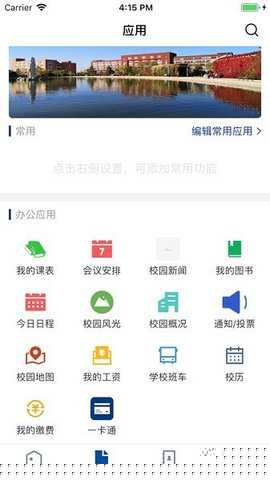 在主界面浏览各功能模块,如资讯、课表、预约等。