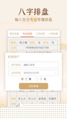 八字排盘免费排盘是一款基于传统命理学原理开发的命理分析软件,通过输入准确的出生信息,可自动生成包含天干地支、五行、十神、大运等核心要素的详细命盘,为用户提供关于性格、事业、健康及运势等方面的个性化解读。