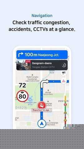 韩国地区信息收录全面,路线规划基于实时路况,准确性优于部分国际地图软件。