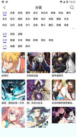 启动软件后,可通过顶部搜索栏或分类导航查找目标漫画。