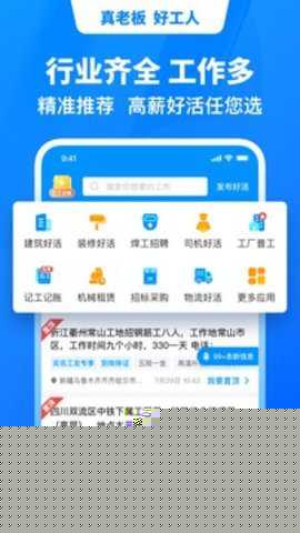 深耕建筑领域,提供大量一线工地招工、装修、技工等岗位,覆盖部分全行业通用职位,满足多元需求。