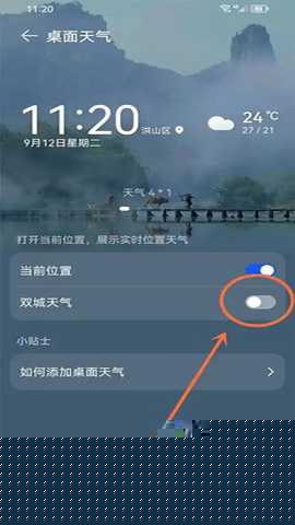 长按桌面空白处进入编辑模式,从窗口小工具列表拖拽天气组件至桌面,首次使用需在组件设置中授权位置访问权限。