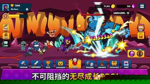 初期跟随引导熟悉点击攻击与技能释放的基础操作。通过击败怪物获取金币与宝箱,优先在更新界面强化基础攻击力与生命值。面对强大头目时,需观察其攻击模式,适时切换对应属性的武器并主动点击释放高伤害技能以快速取胜。持续完成各类任务,积累资源用于解锁和升级更高级的装备与遗物,从而有效提升整体战力,挑战后续更高难度的关卡。所有必要资源均可通过本站获取。