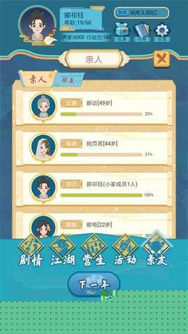 武侠人生模拟器内置作弊菜单折相思是一款以文字互动为核心的武侠题材角色扮演作品,将扮演一名初出茅庐的少侠,在开放的江湖世界中通过点击选择展开冒险。其核心在于通过不同的剧情抉择影响角色命运,结合武功修炼、门派经营与江湖纷争,构建出高度自由的个性化武侠人生旅程。