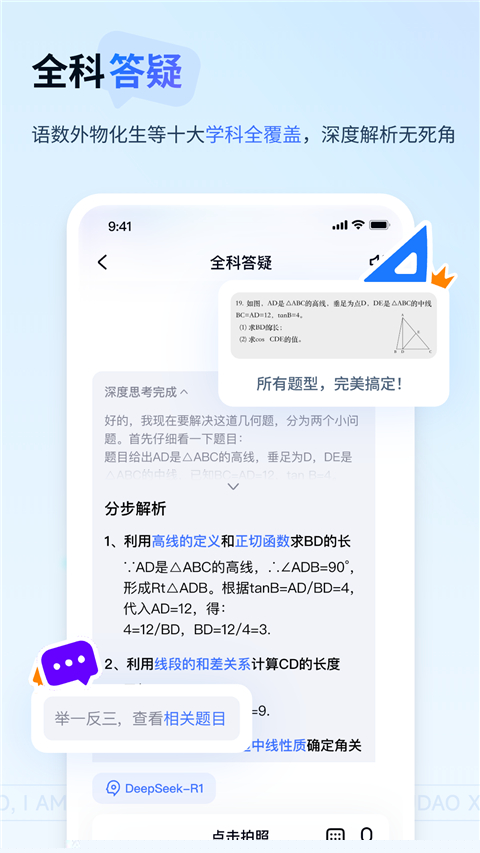 覆盖K12全学科,解题过程注重思路引导而非简单答案呈现。