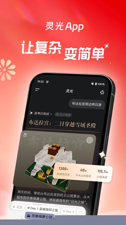 启动软件后,在对话界面输入目的地等关键词,系统将自动整合信息并生成包含景点的行动路线图。