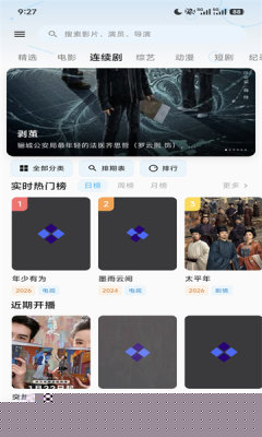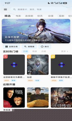 进入主界面后,可通过顶部的搜索框直接查找影片,或利用分类导航进行浏览。