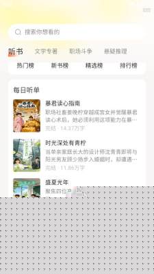 完成安装后,进入主界面即可浏览或通过搜索框查找特定作品。在作品详情页点击播放按钮即可开始收听,音频支持后台播放与锁屏控制。可将喜爱作品添加至个人书架,便于后续快速续听。设置中可根据网络状况或个人偏好,手动选择或启用智能音质切换。