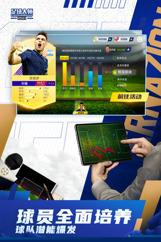 足球大师黄金一代国际版是一款以足球俱乐部经营与策略对战为核心的体育竞技手游,将扮演一名俱乐部经理,通过招募传奇球星、制定战术策略、参与全球联赛,体验从草根球队到世界豪门的完整成长历程,感受运筹帷幄的深度管理乐趣。
