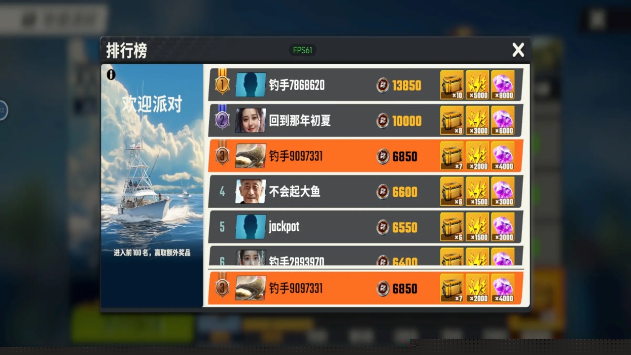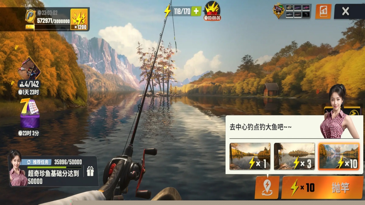 参与锦标赛积累积分,兑换珍贵鱼卡以提升渔获分数。对决模式是高效的积分获取途径。注意渔场左下角提示,针对性地选择藏宝图或稀有鱼点位进行垂钓。