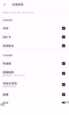 涵盖SIM卡状态、内存信息、传感器数据、连接检测、屏幕显示、摄像头功能、音频输出及振动测试等完整硬件项目。