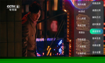 在播放界面或设置中,可进行清晰度切换、线路选择以及将喜爱频道添加至收藏夹。