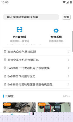 在软件首页的搜索框中直接输入故障码或故障现象关键词,系统将关联海量维修案例与软件供您参考。