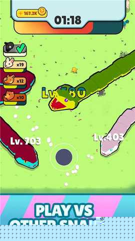 通过滑动屏幕控制正义之蛇移动,首要目标是吞噬场景中的食物以增长身体与力量。