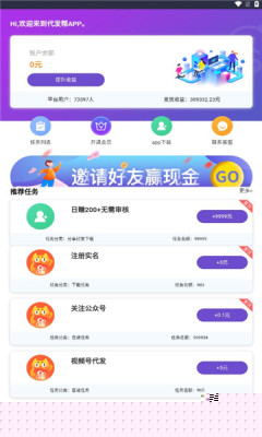 代发帮是一款集悬赏任务与社交互动于一体的移动软件,通过任务大厅提供注册、关注、内容代发及广告观看等多种任务选项,每项任务均标注明确单价,用户可通过完成任务获取收益,参与推广活动可获得额外分红,操作简便且无门槛限制,适合各类用户参与体验。