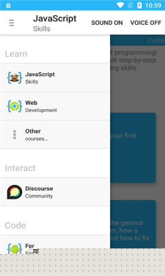 内置了从基础到高级的交互式课程,涵盖JavaScript语法和Web开发实战,可直接在软件内学习。