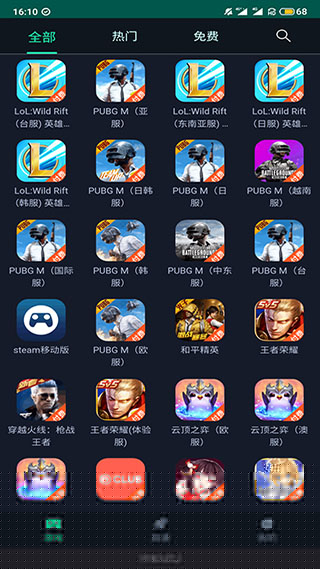 覆盖包括英雄联盟手游、使命召唤手游等热门作品的多个国际区服。
