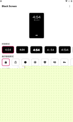 black screen是一款专为Android设备设计的屏幕管理工具,通过强制黑屏功能在设备运行时进入低功耗状态,有效延长电池续航并保护隐私。支持自定义息屏显示信息如时间、电量及通知,结合动态光效提升视觉体验,适用于音乐播放、视频观看等场景。