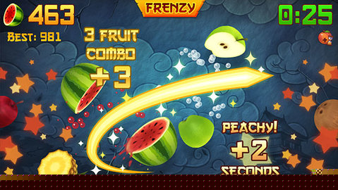 连续切割多个水果可触发连击,获得成倍分数奖励。