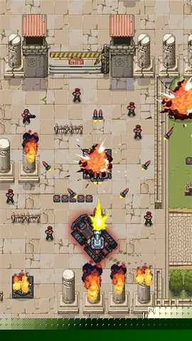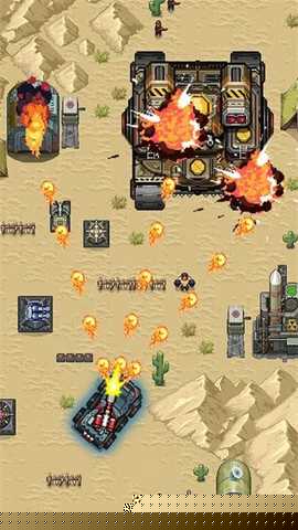 面对重型坦克或直升机等精英单位,可拾取闪烁的五星道具,将主炮暂时升级为范围杀伤的全屏炸弹以快速清场。