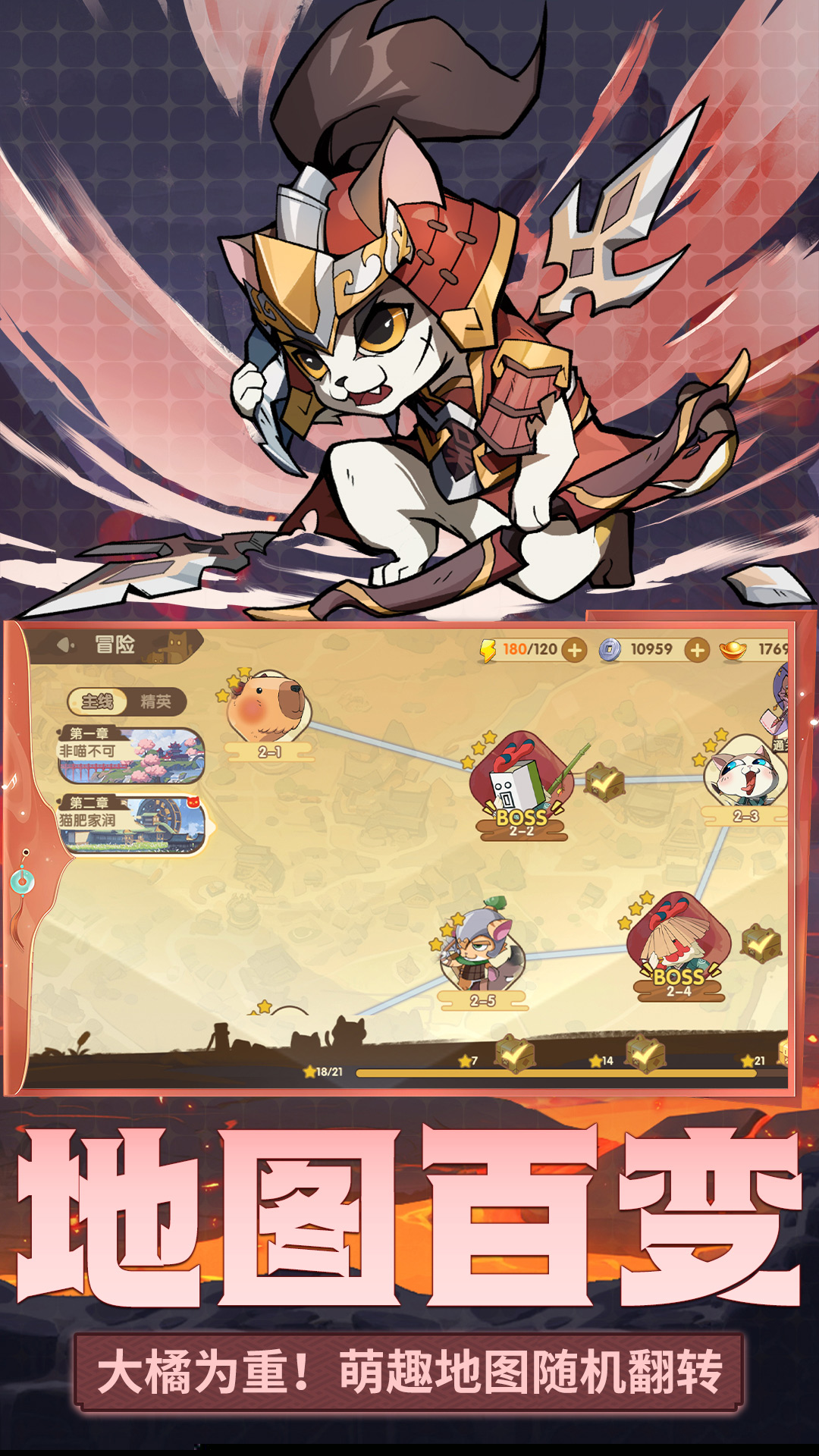 数十位造型与技能各异的萌猫角色可供收集,通过战斗与任务提升等级,解锁专属强力技能,构建独一无二的战斗小队。