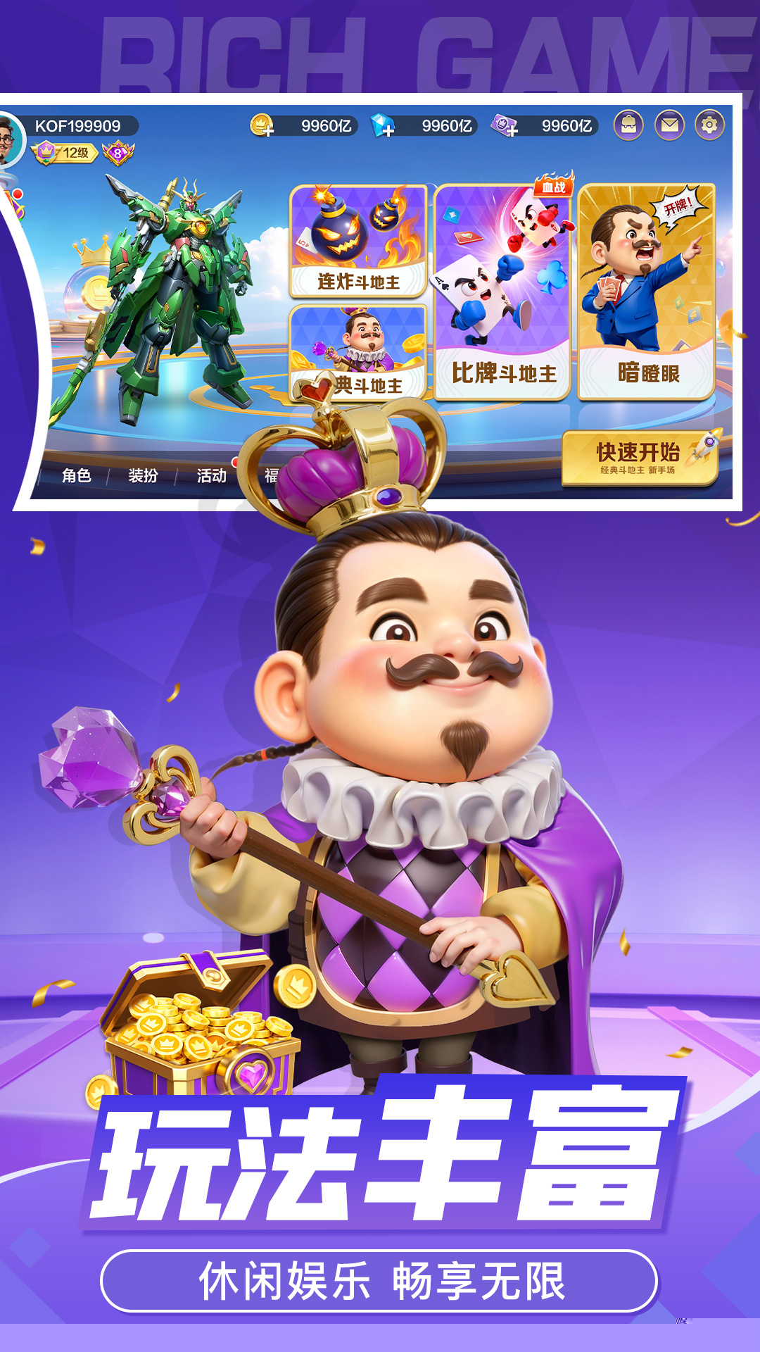 皇冠斗地主是一款融合了经典规则与创新元素的多人在线竞技手游,其核心玩法在传统斗地主基础上进行了深度优化与拓展,为营造出更具策略性与沉浸感的对局环境。产品通过引入高级场次、多样化模式以及丰富的互动系统,满足不同层次的需求,带来持续新鲜的游戏体验。