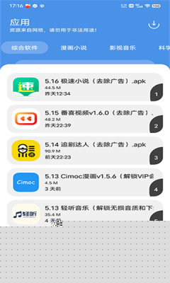可通过分类浏览或搜索功能快速定位所需软件、漫画或影视内容。