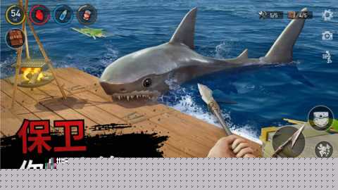 初期生存核心在于使用钩爪收集海面漂浮的木板与塑料,快速扩建木筏基础面积以获取操作空间。
