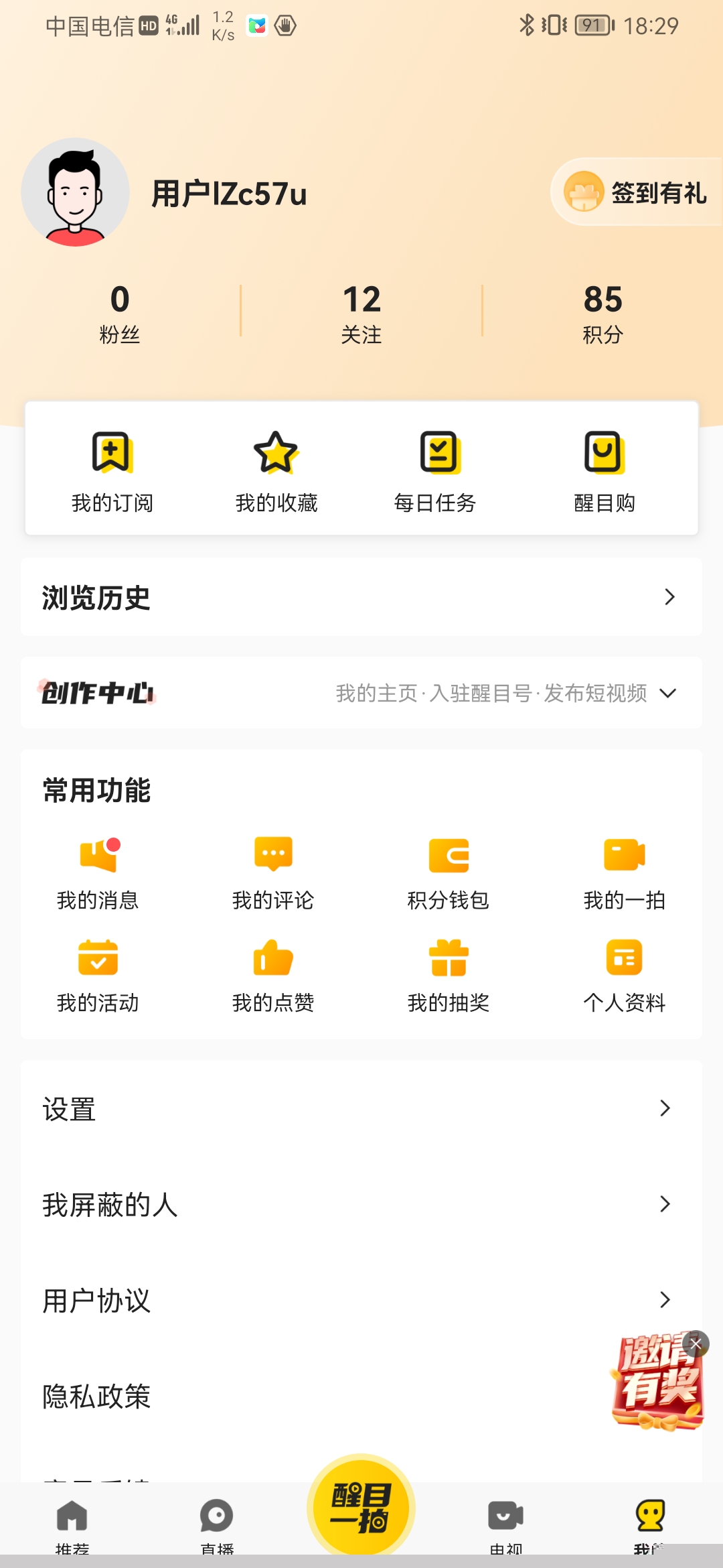 进入个人中心,可管理发布的内容、关注创作者或通过醒目购入口直达关联电商页面进行消费。