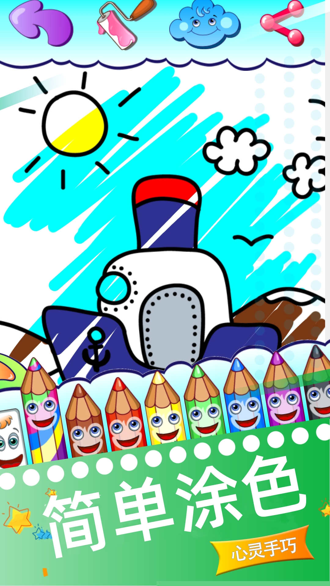 启动软件后,可从主题库中选择动物或神话等场景。进入绘画界面,根据提示使用涂鸦工具自由创作,或切换至填色模式进行区域上色。完成作品后,可保存至本地相册或通过分享功能展示成果。