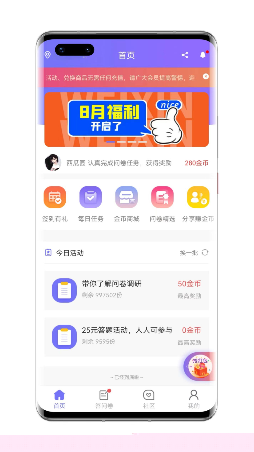 积累的积分可在兑换中心直接换取现金红包或各类实物礼品。