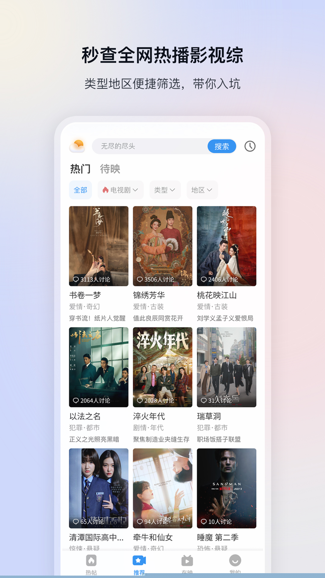 影视大全是一款集影视资讯、社区互动与内容推荐于一体的综合性娱乐软件,汇聚海量影视资源与用户真实评价,帮助用户轻松发现心仪作品并参与深度讨论。