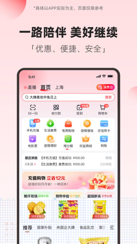整合了甜橙理财、橙分期等金融产品,满足用户综合金融需求。