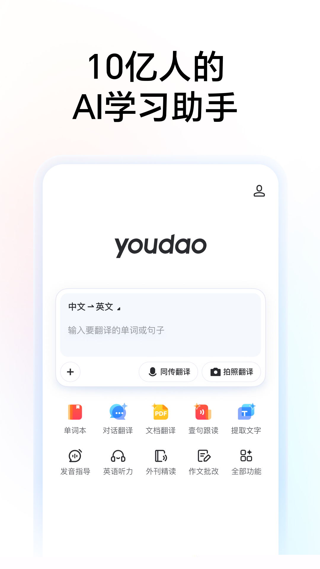 网易有道词典是一款集多语言翻译、权威词典查询、AI智能辅助学习于一体的综合性语言学习软件,支持109种语言互译,涵盖拍照、语音、对话及离线翻译等多种实用功能,满足用户从日常交流到专业学习的全方位需求。